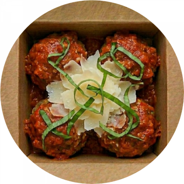 Brioche buns filled with meatballs and your choice of marinara or pesto, finished with a blend of melted Italian cheeses.